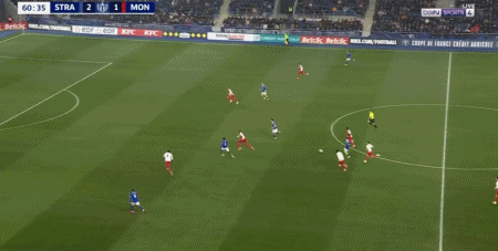 第55分钟,巴尔科直塞,恩西索晃开门将推射破门,斯特拉斯堡2-0摩纳哥